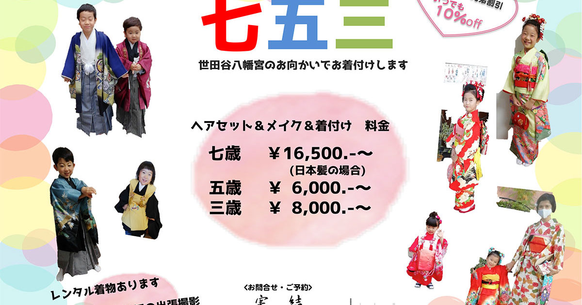 ご家族ご一緒で割引10%です。レンタルも衣裳あります。 神社での出張撮影もご相談ください。